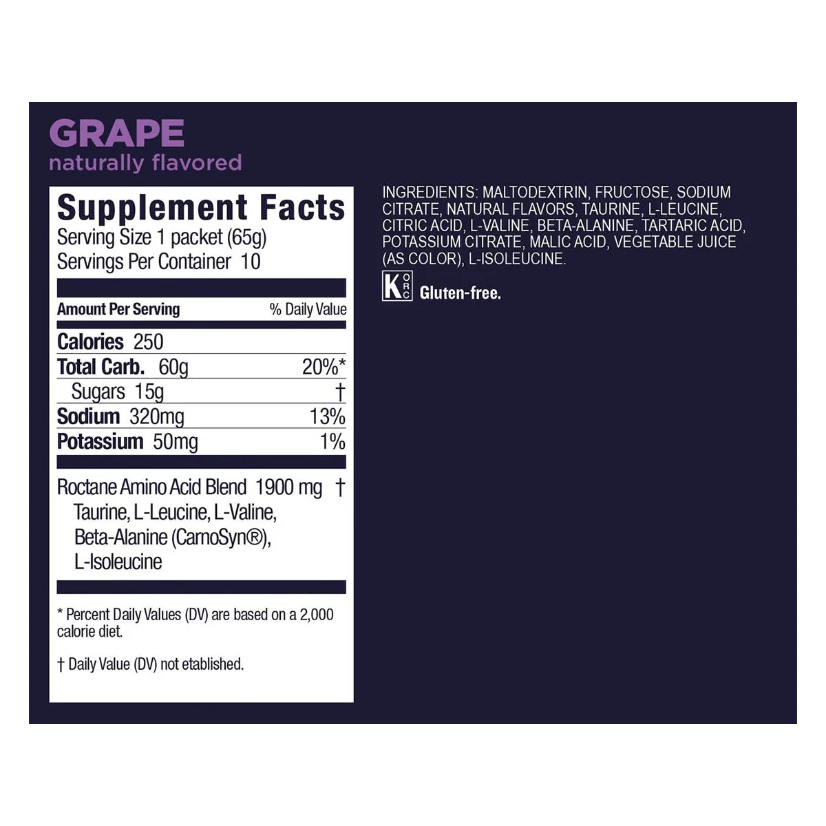 La mezcla de bebida energética Gu varios sabores, es audaz, apetitosa y llena de energía. Este sabor brinda la jugosidad refrescante de una uva. Es una solución todo en uno para la energía, la hidratación, con nutrientes clave como electrolitos y aminoácidos de cadena ramificada para que te sintás fuerte y con energía.