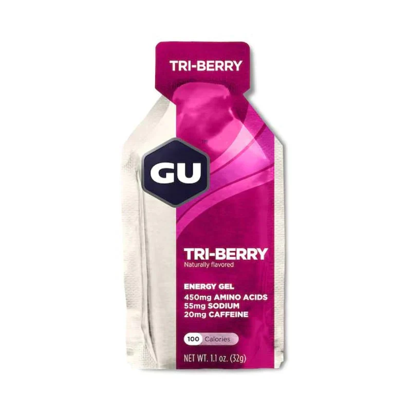 Cyclewear Tienda De CiclismoGel Gu Energy Frutos RojosRealice Su Máximo Potencial Con El Gel Gu Energy La Proporción 3: 1 De Maltodextrina Y Fructosa Ahorra A Sus Reservas Limitadas De Glucógeno Con Una Combinación De Carbohidratos De Absorción Lenta Y Rápida. Los Electrolitos De Sodio Y Potasio Son Justo Lo Que Sus Piernas Anhelan Para Seguir Disparando Adecuadamente. Los Aminoácidos De Cadena Ramificada Aceleran La Recuperación Y Bajan El Daño Muscular Y, Por Supuesto, Los Sabores Deliciosos Bajan Fácilmente.## Beneficios De La CafeínaLa Cafeína Estimula El Sistema Nervioso Central, La Línea De Comunicación Del Cuerpo Entre El Cerebro Y El Músculo. A Través De Esta Estimulación, Se Puede Alcanzar Un Poder Más Alto Por Períodos De Tiempo Más Largos. También Se Ha Demostrado Que La Cafeína Aumenta El Flujo De Ácidos Grasos Libres En El Torrente Sanguíneo, Posiblemente Evitando Las Reservas Limitadas De Glucógeno Del Cuerpo Al Quemar Ácidos Grasos En Lugar De Glucógeno.## Contenido De La Cafeína* Mantequilla De Cacahuete: 0 Mg* Menta: 0 Mg* Limón Sublime: 0Mg* Plátano De Fresa: 0 Mg* Chocolate A La Menta: 4 Mg (Cafeína Natural Del Chocolate Negro)* Vainilla: 20 Mg* Chocolate: 20 Mg* Sólo Llano: 20 Mg* Mandarina: 20 Mg* Tri-Berry: 20 Mg* Blackberry Jet: 40 Mg* Espresso: 40 Mg