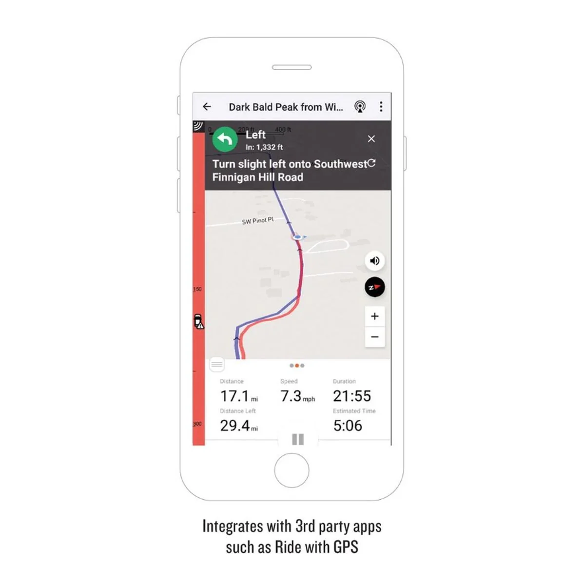 Al vincularse con tu smartphone compatible, el radar varia se integra con tus aplicaciones favoritas, como ride with gps, que superpone los mapas con alertas del radar de visión trasera.