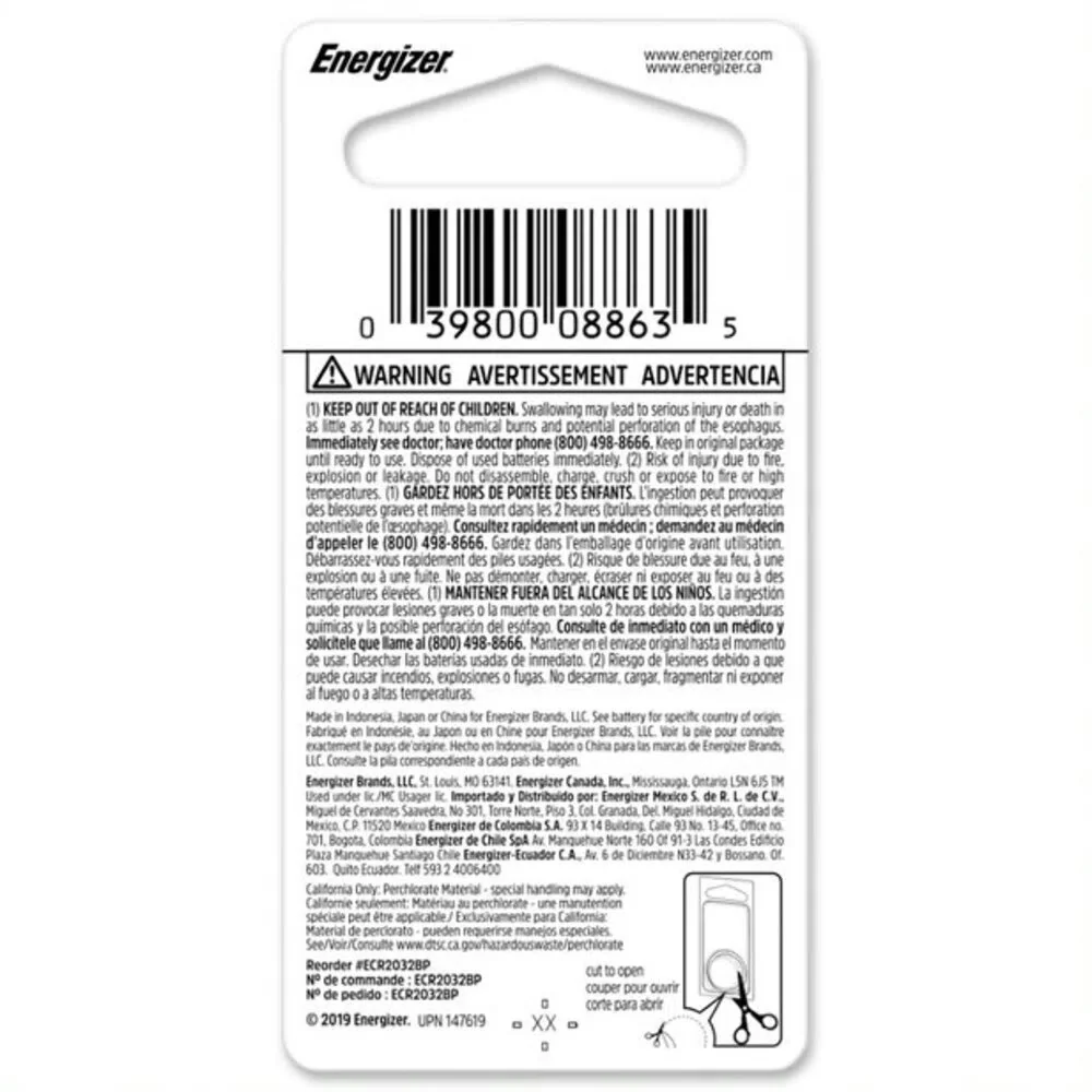 Bateria 2032Para La Electrónica De La Casa, Como Entradas Sin Llave, Libros Electrónicos Y Monitores De Glucosa, Energizer® Va Más Allá De Los Tamaños Básicos De Baterías Para Brindarte Todo Lo Que Necesitas.Energía Confiable Y Responsable. Se Utilizan En Monitores De Frecuencia Cardíaca, Entradas Sin Llave, Monitores De Glucosa, Juguetes Y Juegos. Funcionan En Temperaturas Extremas De -30 A 60 ºc. Mantienen La Carga Durante 8 Años Cuando No Están En Uso.Tamaño De Las Celdas: 2032Iec: Cr2032Volt: 3Reemplazo Para: 5004Lc, Br2032, Dl2032, Ecr2032, St-T15Ideal Para Monitores De Frecuencia Cardíaca, Entradas Sin Llave, Monitores De Glucosa, Juguetes Y Juegos