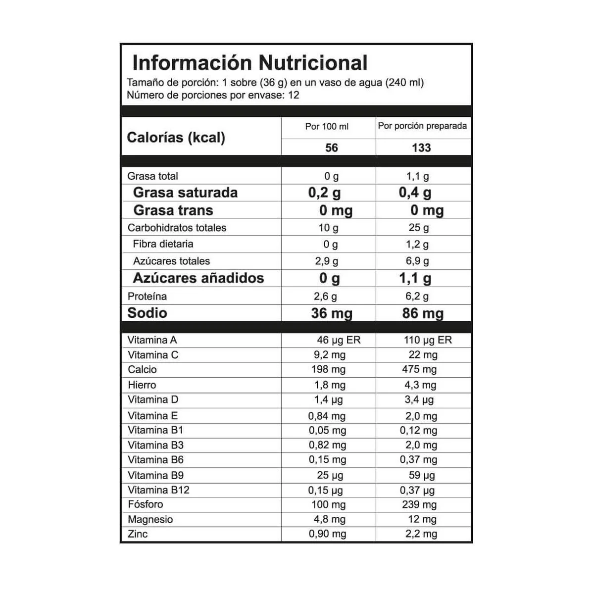 - 5 gr de Proteína en una mezcla de Whey Protein hidrolizado.