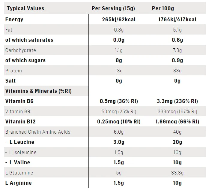Bcaa Perform Es La Última Incorporación A La Gama, Que Ofrece Una Forma Conveniente De Apoyar El Mantenimiento De La Masa Muscular.Este Producto Contiene 6 G De Bcaa (3 G De Leucina, 1.5 G De Isoleucina Y 1.5 G De Valina) En Una Proporción De 2: 1: 1, Con 5 G Adicionales De L-Glutamina Y 1.5 G De L-Arginina.Las Vitaminas B Pueden Ayudar A Reducir El Cansancio Y La Fatiga, Por Lo Que Este Producto Es La Bebida Ideal Para Consumir Antes, Durante O Después Del Ejercicio.Características Principales6G De Bcaa’S Por Porción5 G De L-GlutaminaSabor A Frutas De Verano, Mezclado Fácilmente En Aguaaminoácidos De Cadena Ramificada (Bcaa) (Leucina, Isoleucina, Valina) (40%), L Glutamina (33%), L Arginina Hcl (10%), Aromatizante Natural, Ácido (Ácido Cítrico), Emulsionantes ( Lecitina De Soja , Lecitina De Girasol ), Edulcorante (Sucralosa), Colorante Natural (Beta Caroteno), Mezcla De Vitamina B (Piridoxina Hcl, Ácido Fólico, Cianocobalamina)Para Alérgenos, Por Favor, Consulte Los Ingredientes En Negrita¿Por Qué Elegir?Formulado Para Apoyar El Mantenimiento De La Masa Muscular62 Calorías Por PorciónConsumir Antes/Durante/Después Del Entrenamiento O Como Bebida Con Snacks Entre Comidas Principales. Sobre El Rendimiento De BcaaBcaa Perform Es La Última Incorporación A La Gama Y Ofrece Una Forma Conveniente De Apoyar El Mantenimiento De La Masa Muscular.Este Producto Contiene 6 G De Bcaa’S (3 G De Leucina, 1,5 G De Isoleucina Y 1,5 G De Valina) En Una Proporción De 2:1:1, Más 5 G De L-Glutamina Y 1,5 G De L-Arginina.Las Vitaminas B Pueden Ayudar A Apoyar La Reducción Del Cansancio Y La Fatiga, Lo Que Convierte A Este Producto En La Bebida Ideal Para Consumir Antes, Durante O Después Del Ejercicio.IngredientsBranched Chain Amino Acids (Bcaas) (Leucine, Isoleucine, Valine) (40%), L Glutamine (33%), L Arginine Hcl (10%), Natural Flavouring , Acid (Citric Acid), Emulsifiers (Soy Lecithin, Sunflower Lecithin), Natural Colouring (Beetroot Red), Sweetener (Sucralose), Vitamin B Mix (Pyridoxine Hcl, Folic Acid, Cyanocobalamin)For Allergens, Please See Ingredients In Bold5025324001705