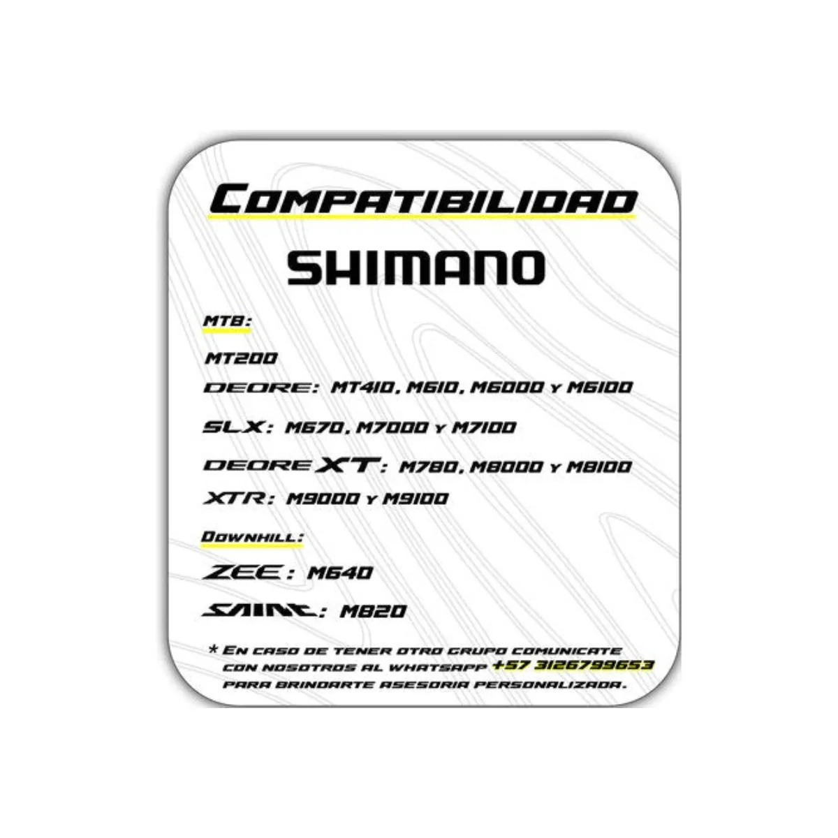 • Compatibilidad: Diseñado para una amplia gama de frenos hidráulicos Shimano que utilizan un puerto de purga M5, incluyendo modelos de las series Deore, SLX, XT, XTR, Saint, Zee, y algunos frenos de carretera. Es importante verificar la rosca de tu pinza o maneta de freno para asegurar la compatibilidad.